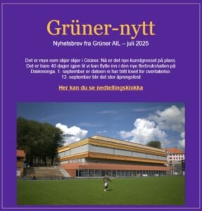 I denne utgaven av Grüner-nytt kan du lese om det nye kunstgresset og den nye hallen og fotballens sommer aktiviteter.
